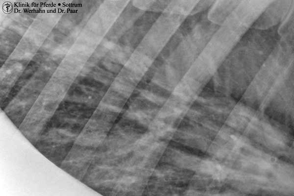 In der Inneren Medizin findet das Röntgen seinen Einsatz bei der Untersuchung des Kehlkopf und der Lunge, des Schlundes (Schluckstudien mit Kontrastmittel) und in der Kolikdiagnostik beim Fohlen und kleinen Pony.